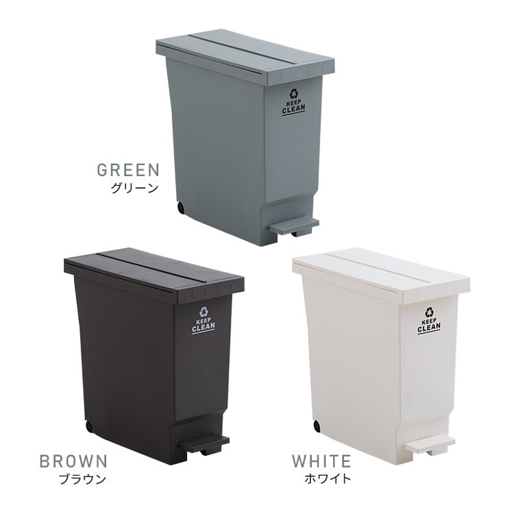 ゴミ箱 ダストボックス 45L スライド式蓋 キャスター付き シンプルデザイン 大容量 ファミリー カウンター下 食器棚下 白 ホワイト グリーン ブラウン